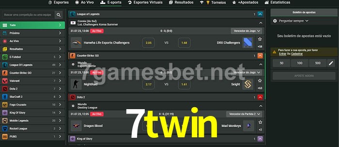 A aposta 7twin oferece aos jogadores a experiência mais conveniente de apostas em eSports!